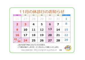 11月の休診日のお知らせです。