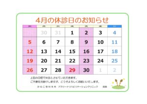 4月の休診日のお知らせです。